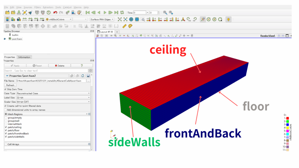 本記事では、この ベナール対流を OpenFOAM を用いて数値的に再現し、温度分布やセル構造がどのように形成されるのかを確認していきます。