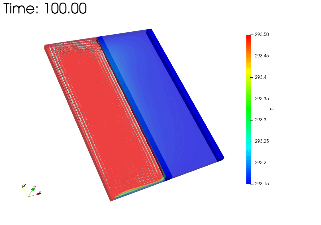 使用するソルバはchtMultiRegionFoamで熱流体と固体を連成させた非定常解析用のソルバになります。