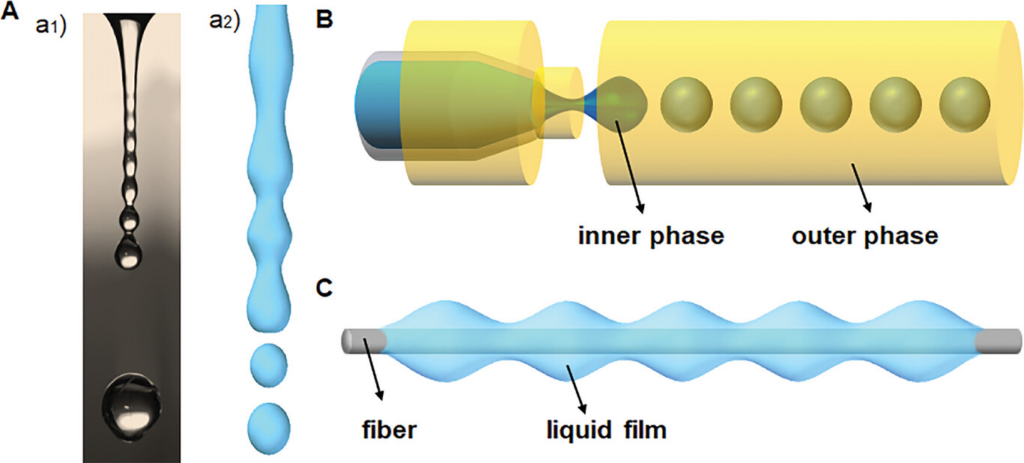 プラトー・レイリー不安定性とは、細長い液体の柱や液体ジェットが、表面張力の作用でくびれ、最終的に液滴へと分裂してしまう現象です。