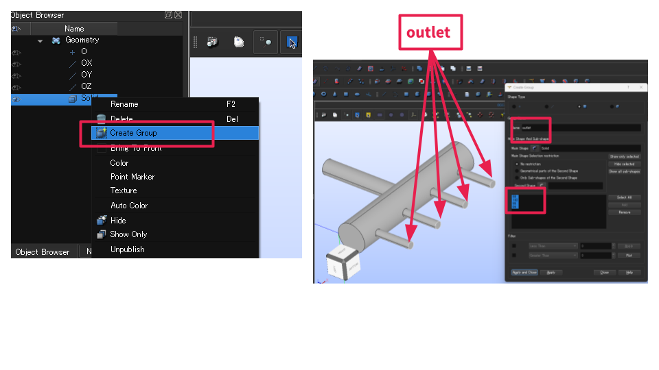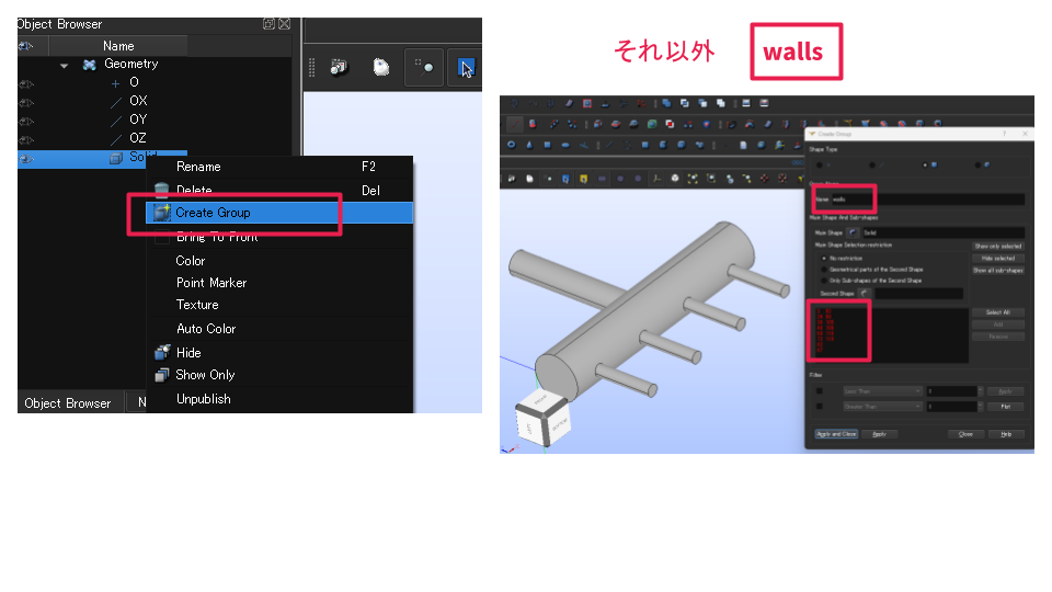 OpenFOAMなどに渡すときは、ここで作る Group名が境界名 になります。
