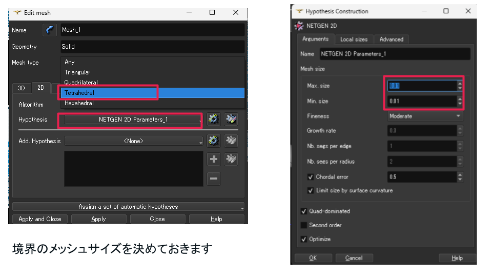 • Hypothesis:NETGEN 2D Parameters(境界サイズ用)や NETGEN 3D(体積用)が見えるはず
